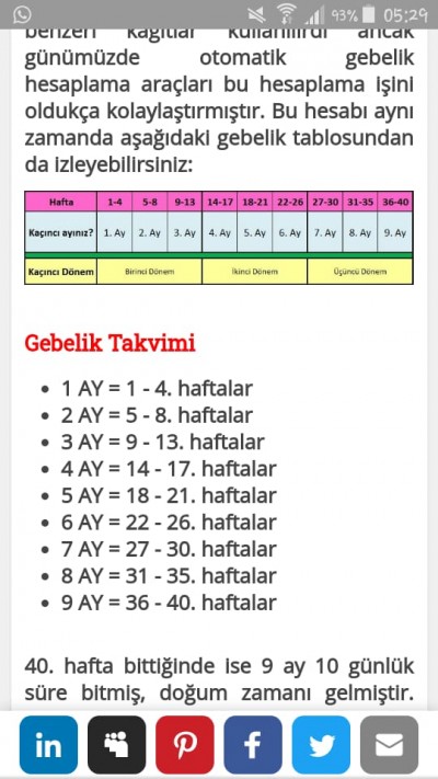 gebelik haftasina gore kac aylik hamileyim tablolu